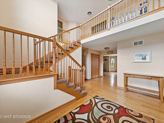 Very Large Super Attractive 4 bedroom 2 story home with open floor plan in top "Move-in Condition". Large corner lot with covered front porch, fenced backyard, and large stone patio with stone walls and fire pit. Walk in the front door to a large open 2 story foyer with hardwood floors and a large open second floor landing. This home also has vaulted and trayed ceilings throughout. Extra large eat-in kitchen with breakfast bar, table area, and patio doors that lead to the great backyard. Cozy family room with stone natural gas fireplace, main level office, and laundry room. Large master suite with large bathroom having two separate "His & Her" vanities, oversized jetted bathtub, separate shower, and huge walk in closet. The other bedrooms have walk-in closets as well, which gives this home a lot of extra storage space. Full basement that has a roughed-in bathroom, ingress and egress window, 75 gallon oversized water heater, water softener, and humidifier. This home also has zoned heating and C/A for the first floor and second floor, 8KW natural gas generator, double stacked sump pumps, large heated 2.5 car garage which is 29' deep, concrete driveway was installed in 2017 and is extra wide, and the exterior of the home is brick around the whole first level. Relax on your front patio or your beautiful backyard. Play set stays! Also included is an AHS 1 year home warranty. Come out and take a look at this large 2 story in Prairie Crossings which is close to everything. You will love it!!!!!