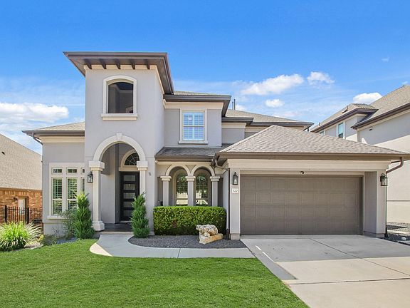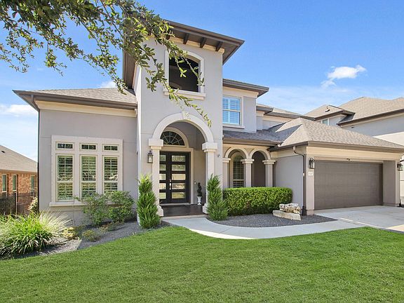 Welcome to The Ridge at Reunion Ranch, where Austin’s vibrant energy meets the tranquility of Dripping Springs. This sought-after community is surrounded by breathtaking scenery—rolling greenbelts, winding trails, open fields, and peaceful creeks—all creating an unmatched Hill Country setting. From the moment you arrive, this home captures attention with its pristine landscaping, inviting Texas-style front porch, and elegant double-door entry. Inside, a grand foyer with soaring ceilings sets the tone for the thoughtfully designed layout. At the front of the home, you’ll find a formal dining room complete with a butler’s pantry leading into the kitchen, as well as a private home office ideal for remote work. The expansive great room offers a wall of sliding glass doors framing beautiful greenbelt views. The open-concept kitchen is a showstopper, featuring modern neutral finishes, abundant cabinetry, extensive countertop space, and an oversized island perfect for both meal prep and entertaining. The luxurious primary suite provides a private retreat with a cozy bay window sitting area. Its spa-inspired bath includes a corner soaking tub, walk-in shower, dual vanities, and a custom-designed closet offering exceptional storage and organization. Upstairs, versatility shines with a large enclosed flex room—perfect for a media room, gym, or study space—and a spacious game room ideal for family gatherings. A guest suite with its own full bath is perfect for visitors, while two additional bedrooms share a convenient Jack-and-Jill bath. Residents of Reunion Ranch enjoy access to top-rated Dripping Springs ISD schools, along with a low HOA and tax rate. With grocery stores, dining, and entertainment just minutes away, plus a quick 20-minute drive to downtown Austin and 25 minutes to the airport, this home perfectly blends luxury, location, and lifestyle.