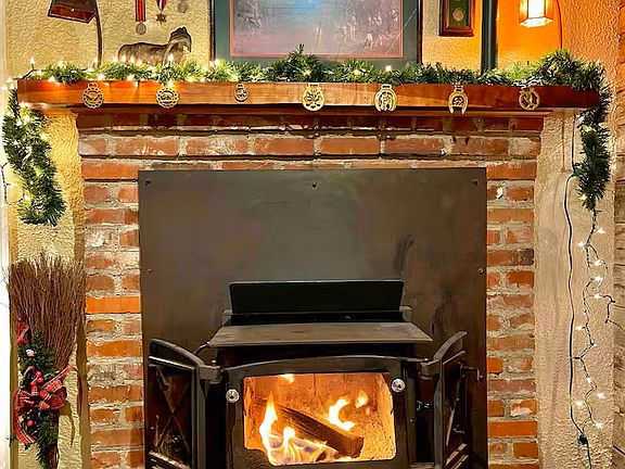 Step inside to an inviting open layout with a cozy living room, smart TV, and plenty of natural light. The fully stocked kitchen has everything you need for long-term living with a woodburning stove to enjoy dinner by the fireplace. The large master bedroom provides a relaxing place to unwind with ensuite bathroom with a jacuzzi bathtub. Two additional bedrooms offer flexible space. A cozy den has a reclining loveseat with t.v.