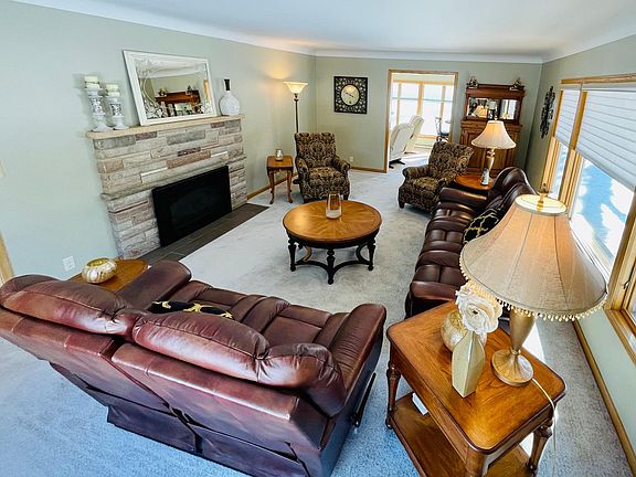 Oh My, the quality, comforts, and conveniences that this home provides is endless. Main floor living and updated finishes at their finest. This one-story ranch style home is extraordinary and comfortable, from its 2 gas fireplaces, large living room, formal dining, custom kitchen cabinets with quartz counters, to its owners ensuite with a walk in shower and in floor heated tile floors. Oh and a four season porch which also has heated floors. This home is ideal for relaxing, entertaining, living, working or playing. Highlighted features include newer flooring, new 50 year warranty shingles, new concrete patio with a 6 burner gas grill, silhouette blinds. Located close to businesses, schools.