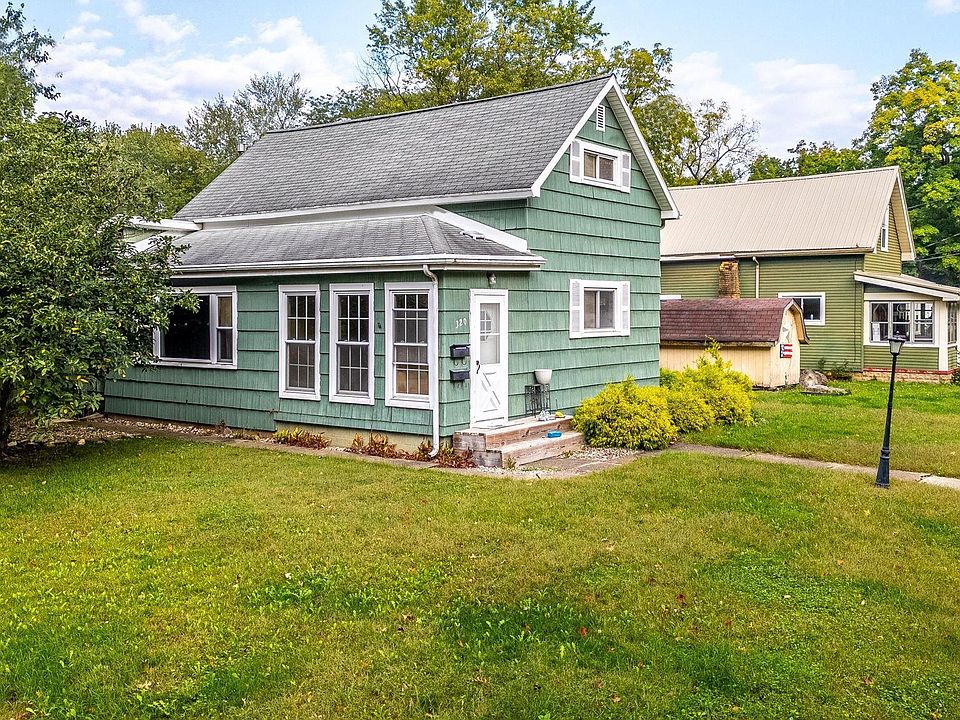 Cute recently updated 3 bedrooms, 2 bath home containing around 1,532 q ft of living area. The main level consists of a large living room with open stairway to upper level and built-in book shelves. Nice kitchen with an adjoining breakfast area that has a table and built-in seating that remains. One main level bedroom. Main level remodeled bath with a walk-in shower. Main level laundry room with washer and electric dryer that can remain. Large foyer. The upper level was completely remodeled including, new wiring, plumbing, ductwork, insulation, drywall and floor coverings, Remodeled bath including a new tub/shower unit. etc. The 90+ gas furnace and central air unit were replaced in 2007. A new 200-amp electric panel box was installed and some updated wiring. 19.5’ x 30’ 4” detached garage with updated garage door and opener. Rear covered porch and concrete patio. Asphalt driveway and extra paved parking area along the street. Wood privacy fenced rear yard. Playset remains.