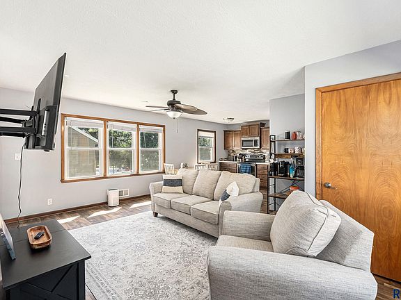 Hard to find 3BD/2BA ranch home near shopping, parks, and schools on the east side of Sioux Falls. The main floor and kitchen were fairly recently updated, including newer flooring, countertops, cupboards, and appliances. Enjoy great sunlight coming through the large windows throughout the open main level. Also, the window in the basement family room makes the basement feel open, warm, and welcoming. You'll find 2 bedrooms with new carpeting and a full bath on the main level and a large bedroom and full bath in the basement. The seasonal porch on the west side of the home is a great place to relax with family and friends leading out to a nice-sized corner lot with several great shade trees .You will also love the oversized single stall garage with generous storage!