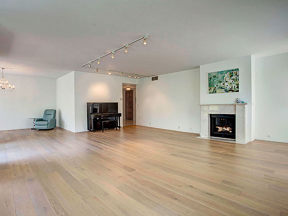 Gorgeous remodeled 2 bed and 2.5 bath corner unit in prime Beverly Hills. High ceilings combined with expansive picture windows in every room transforms this 2000+ sq ft condo into a sunny and spacious home. The immense living area features a flexible floorplan with a fireplace, private balcony and area for den. Modern kitchen has a breakfast nook, tons of cabinetry, quartz countertops, glass tile backsplash, and stainless steel appliances. Bathrooms have been updated with custom cabinets and marble countertops and tiles. The master suite has its own fireplace, four large closets including a walk-in, vanity area, and master bath with separate tub and shower. Inside laundry, newer hardwood floors, and plantation shutters throughout finishes this stylish home. The desirable Maple Condominium Towers comes with side by side parking, extra storage, pool with spa, courtyard garden and rec room. Only moments from the best of Beverly Hills shopping, dining, and entertainment.