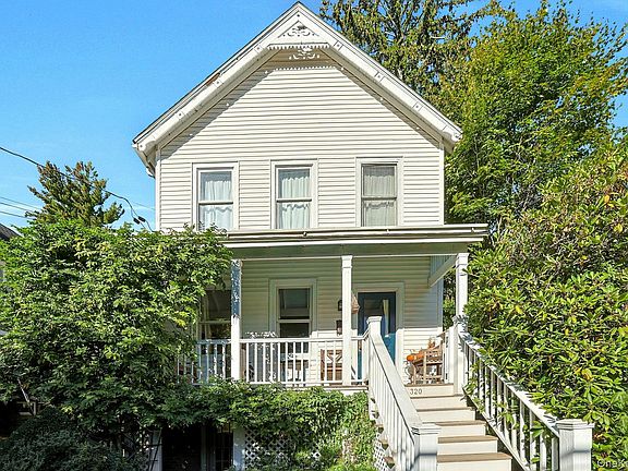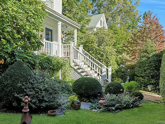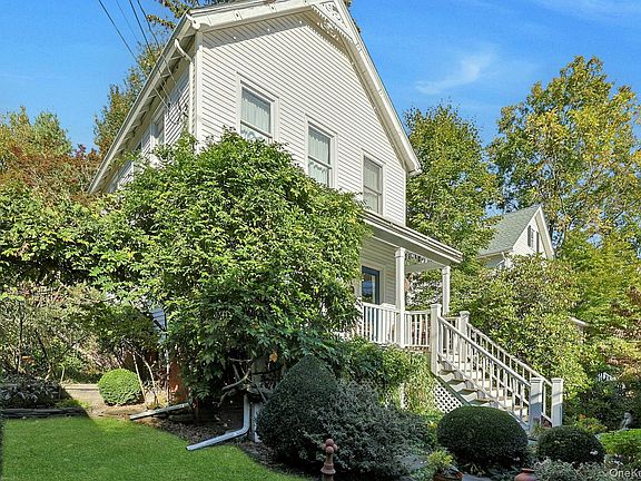 Charming Village Victorian is available for the first time in over 30 years! Tastefully updated and lovingly cared for, this home is filled with the perfect balance of period details and modern conveniences. Stepping through the arched privet hedge you enter into an oasis of extraordinary gardens surrounding this jewel of a home. Welcomed by a classic rocking chair porch, the beautifully appointed foyer leads to a seamless circular floor plan - a renovated kitchen with cherry wood cabinets, Viking range, high-end appliances, and backsplash tiles from Paraguay, a half bath, the dining and living rooms with high ceilings, wood moldings, and oversized windows. Just beyond the kitchen and half bath is a deck that leads to a magical tiered backyard garden, perfect for dining and entertaining, or quiet reflection. There are three bedrooms and a full bath on the second floor, and the entire home is filled with hardwood floors, original details, and beautiful light. Within walking distance to everything Nyack has to offer: public transportation, the weekly farmers market, vibrant downtown shops and restaurants, the library, the scenic waterfront at Memorial Park, Nyack Beach State Park, Hook Mountain, and so much more. This is a rare opportunity to be part of a thriving Rivertown community, all within 30 minutes to NYC.