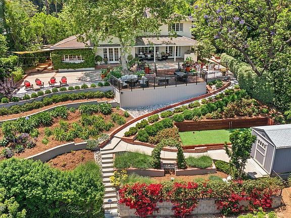 Nestled on 1.76 private acres above the Arroyo Seco, this exceptional gated estate in Pasadena offers breathtaking panoramic views of the city skyline and surrounding mountains. This elegant two-story Colonial Revival was designed by architect Y. W. Nibecker in 1948 and offers a timeless blend of architectural grace and thoughtful modern updates. Designed for elegant living and effortless entertaining, the home features a separate casita and a floor plan that flows seamlessly from room to room. Through the formal entry is a gracious living room that sits just off the entry, showcasing a double-sided fireplace, French doors to the backyard, and expansive views of the natural landscape. Next to it, the welcoming family room features the other side of the fireplace, built-in shelving and sweeping vistas--perfect for cozy evenings or casual gatherings. Adjacent to the living room, the formal dining room is a serene setting for entertaining, complete with windows showcasing the captivating views. The spacious, beautifully remodeled kitchen has been tastefully updated with a mix of granite and quartz countertops and ample cabinetry, with another set of French doors leading to the backyard. Off the kitchen, a laundry room, a guest suite with a private bath, and access to the attached three-car garage offer convenience and flexibility. Upstairs, the primary suite provides unobstructed views and has a private en suite bath. Two additional bedrooms and a bath complete the upper level, offering ample space. Wood floors flow throughout most of the home, adding warmth and cohesion. The separate casita is attached to the garage and features its own private entrance and bath, offering an ideal space for guests, a home office, or creative studio. Outside, the grounds are a tranquil retreat. Mature trees, formal gardens, and beautiful landscaping create a peaceful oasis, while the covered rear terrace, patios, and a combination putting green and bocce ball court provide multiple spaces to relax and entertain. The expansive gated driveway and enclosed pool area with loggia complete this truly special property--one that combines natural beauty, architectural heritage, and a rare sense of seclusion just minutes from all that Pasadena has to offer.
