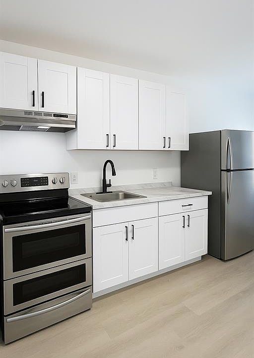 Modern kitchenLuxury vinyl floorsStainless steel appliances