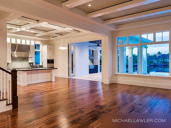 **For additional details on this property visit MICHAELLAWLER.COM or call 239-261-3939.** spectacular 4 bedroom + den, 5 bath residence with preferred southern exposure is the perfect complement to the highly coveted Park Shore waterfront lifestyle. The newly constructed home, completed summer 2015, offers a spacious main level master suite and two second floor en suite guest bedrooms. The gourmet kitchen is splendidly appointed with dramatic cabinetry, granite counter tops, island work area and walk-in pantry. The great room, with rich hardwood flooring, overlooks the outdoor living space which includes an outdoor kitchen, water features, infinity edge pool, fire pit and boat dock blending seamlessly with the lovely view of Venetian Bay. Two 2-car garages and a casita guest suite with designated exterior entrance are additional features that set this home apart from the rest. Residents of Park Shore enjoy membership to the private Park Shore Beach Park.