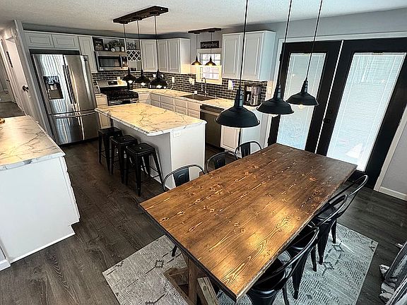 This beautifully updated 3-bedroom, 3-bathroom home offers the perfect blend of modern amenities and cozy comfort. As you step inside, you’ll immediately notice the new vinyl flooring that flows seamlessly throughout the main living areas, complemented by plush new carpeting in the bedrooms. The kitchen has brand new cabinets and countertops. The two full bathrooms feature elegant new vanities, and the added quarter bathroom on the lower level ensures convenience for all. An added dedicated laundry room and a newly installed water heater and water softener make this home as functional as it is stylish. The property exterior is maintained by a sprinkler system equipped with a smart irrigation controller, ensuring your lawn stays lush and green with minimal effort. The smart Nest thermostat adds to the home’s efficiency, keeping your energy bills in check. Located directly across from Kenwood Intermediate School, this home is ideal for families seeking a friendly neighborhood with great educational opportunities.