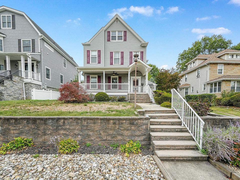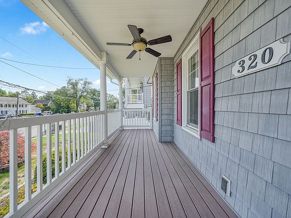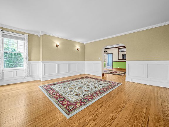 This first-floor unit features high ceilings, an oversized formal living room and formal dining room, both with original hardwood floors. The updated kitchen (2007) includes granite countertops, stainless-steel appliances, and cherry cabinetry. Two sun-filled bedrooms, one full bathroom, and rear-yard access to a stamped-concrete patio complete this level. Additional highlights include a detached 2-car garage, a driveway for 5+ cars, and a full unfinished basement freshly painted and offering plenty of storage complete with a half-bath/laundry combo. Prime commuter location: NJ Transit 190 Bus stop is right at the corner, and the Rutherford Train Station is only a mile away.
