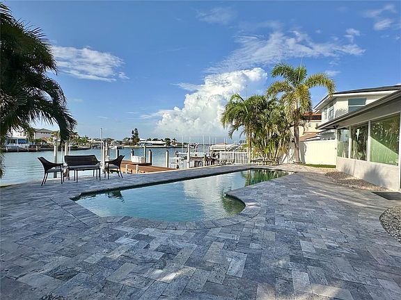 Beautifully renovated and fully furnished 4-bedroom, 3-bathroom pool home in the highly desirable waterfront community of Island Estates in Clearwater! This home features brand-new luxury vinyl flooring throughout, a spacious open layout, and a modern kitchen. It offers the perfect blend of luxury, comfort, and Florida lifestyle. The kitchen has brand-new stainless steel appliances, a large island with bar seating, and a pass-through window facing the pool and outdoor bar area. Enjoy indoor-outdoor living with a covered outdoor pool bar equipped with a built-in grill, bar seating, wall-mounted outdoor TV, and speakers for year-round entertaining. The backyard has brand new turf, a private dock with a lift that accommodates up to a 30-ft boat, and stunning water views. The master bedroom view opens directly to the pool and features a spa-like ensuite with an LED color-changing tub, his and her sinks, and a brand-new shower. The other bathrooms also include LED-lit mirrors and a hallway bath with a color-changing bidet toilet. Additional highlights include a 2-car garage, surround sound in the living room, dining room, and sunroom, a dining area that can double as a conference space with a large TV, and a bonus area that can serve as a home office or additional lounge space. With ample natural light from picture windows and sliding glass doors, this home truly captures the essence of Florida living. Conveniently located near Clearwater Beach, restaurants, shopping, grocery stores, and top local attractions, this stunning home is available now for long-term lease. Do NOT miss out!