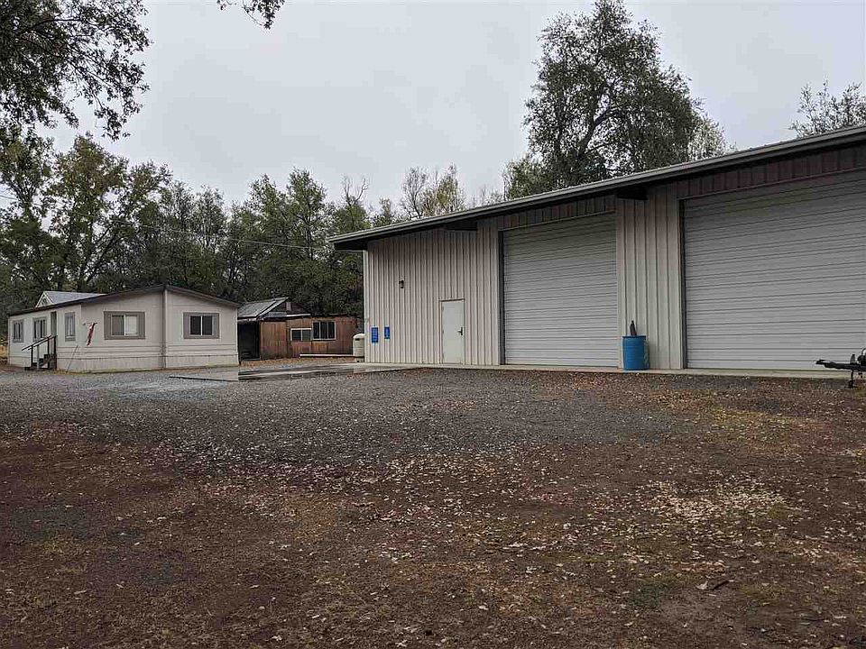 Great shop for all your toys with manufactured home to live in or rent out! This property has both a manufactured home and a shop on .47 acres, set off the street for privacy. Residence is a 3 bedroom, 2 bath manufactured home on well/septic. Newer roof and central air. Propane: cooktop, water heater & central heat. Electric oven & dryer. Shop is a 30' x 60' Butler building, fully insulated, with (2) 14' roll up doors, storage loft, roof vents and 6 skylights. Shop has large half bath, single phase with a separate PG&E meter from the house. Spot out side for shop for RV with power and septic hookups. Another outbuilding offers more storage has been given no value.