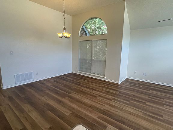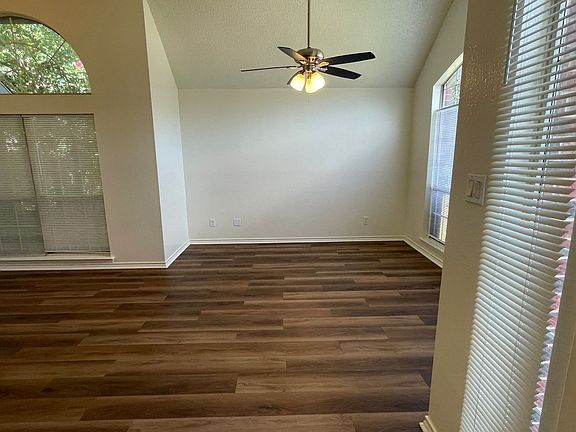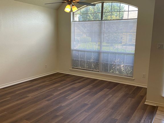 This single story home has formal areas in the front of the home and family room in the back with a fireplace. The kitchen is open to the back living area and has an island. Microwave in kitchen. The master bath has a stand up shower and separate garden tub. There is new vinyl plank flooring in the home with no carpet. New inside paint. The back yard is fenced and has a covered patio. House is gas and electric. No inside smoking, no housing vouchers. App fee is $65 . Deposit holds home for 2 weeks and then rent must start. Income needs to be 3x monthly rent, good rental and no bad in last 5 years. TAR app. and fee can be paid with credit card or zelle. Renters insurance required.