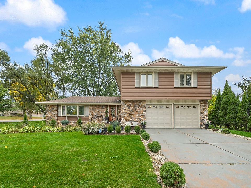 Amazing Spacious Remodeled 4 BEDROOMS AND 2.1 BATHROOMS home with beautiful finished basement and backyard with gorgeous deck and patio! Total livable space 2,894SF. Big HIGH END Sunrise windows with blinds between the glass! A ton of natural light! Remodeled modern kitchen with breakfast bar, custom white cabinets, big pantry closet, white quartz countertops and stainless appliances! New luxury vinyl flooring runs throughout the home. Enjoy a spacious living room with a decorative stone accent wall and patio doors leading to the backyard. Elegant Master Suite with LUXURY MASTER BATH and California style Walk-in closet with built-in white shelving! All four bedrooms are large, featuring new floors, fresh paint, generous closets and modern light fixtures.Large Laundry room on 1st floor. Basement with luxury vinyl plank flooring, built-in fireplace, modern bar with 2 wine coolers where you can entertain friend and family! The lot is over 0.27 acres with. Big 2.5 Car Garage and big concrete drive-way. Amazing backyard with Big Deck with Hardtop Gazebo, patio with built-in stone fireplace, decorative fountain, nice landscaping. New Deck 2023, New Patio 2023, Garage Door 2023 ,Roof 2018, New sump-pump w/h backup 2023, New landscaping 2023. Award winning school districts 54 and 211, exceptional park district, in a top-rated community. This home is immaculately maintained, showcasing neutral decor and thoughtful updates throughout. Don't miss the chance to make this gorgeous home yours!************************** ATTENTION-Current real estate taxes do not include the Homestead Exemption. Buyers using the home as their primary residence may apply for the exemption to reduce property taxes.