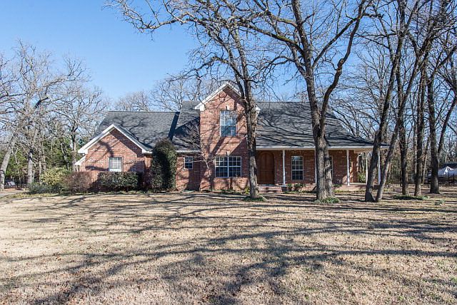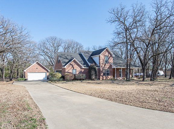 Immaculate freshly painted 2 story home in one of the most sought after neighborhoods in Wills Point. Move in ready. Brick 3/2.5/2 with a detached 2 car garage. Sits on a large lot with abundant oak trees, decorative iron fencing and a large wood deck. Stained concrete, hardwood flooring, crown molding, recessed lighting and a stone WB fireplace. Master suite is on the ground floor with a large master bath. Kitchen has an island cooktop and tons of cabinet space. Upstairs has 2 bedrooms and a bathroom with a jacuzzi tub. An extra room could be an office, playroom or 4th bedroom.