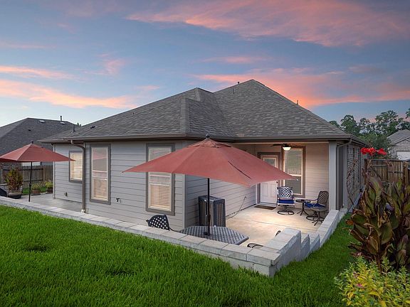 Welcome to recently built 1 story home featuring luxury vinyl floors & high ceilings that create a bright, open atmosphere. Spacious open concept layout seamlessly connects the living, dining, & kitchen areas—perfect for everyday living & entertaining. With 3 generously sized bedrooms and 2 full baths, this home offers comfort and flexibility for families, guests, or a home office setup. The owner's suite includes a private en-suite bath & ample closet space. Step outside to a large, extended patio—ideal for outdoor dining, relaxing, or hosting gatherings. The side yard & patio also include handy Tuff shed & dual fuel generator hook-up, offering both convenience & peace of mind. 3 car garage also has back roll up door for super convenience! This home combines modern finishes with practical features, making it a perfect fit for those looking for low-maintenance living without sacrificing style or function. Enjoy fishing in the community lake & playing tennis at community amenities!