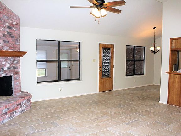 MOVE-IN READY with a great floor plan & split Bedrooms this Greenwood Forest home offers 1977 s.f., pretty curb appeal & NO CITY TAXES! Spacious & inviting Living Room & Dining area with high ceilings, brick fireplace & gorgeous updated tile flooring. Bright & cheerful kitchen with breakfast area, tile back splash & pantry, 2nd Living Area/Den/Office with tile flooring, split 3 bedrooms, 2 baths and the Master BR has a large walk-in closet & high ceiling & the Master Bath has separate shower + tub. Over sized 2-car attached garage with storage/workshop area, super large covered front sitting porch and a storage building in backyard.