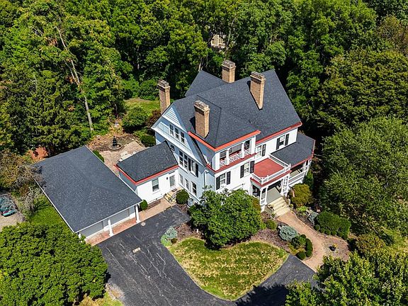 Historic Beauty Backing to Stearns Woods - This rare 1893-built gem offers over 6,500 sq ft of timeless elegance on 1.99 private acres. Featuring 5 bedrooms, 5 full and 2 half baths, this home blends historic charm with modern comfort. Original hardwood floors, detailed built-ins, and dual staircases showcase classic craftsmanship throughout. The second floor includes 3 bedrooms with en-suite baths and a home office, while the third floor offers 2 more bedrooms, full bath and a multi-purpose room. A beautifully finished basement includes a full bath, half bath, exercise room, and expansive entertaining space. Enjoy peaceful outdoor living with a wraparound front porch, back patio, fountain, and a 4-car garage. Backing directly to Stearns Woods, this is a one-of-a-kind opportunity to own a true historic treasure.