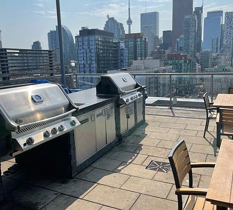 Luxury 1Bdrm + den in the heart of Downtown's trendy district. Nearby the Sony Centre for the Performing Arts, Air Canada Centre and the Distillery District. Quick access to DVP or Gardiner; TTC at Doorsteps. Owner pays for monthly condominium fees, gas, hot water heater rental and water charges. Tenant pays for only electricity, internet and cable TV if desired. One locker and one bicycle storage included.