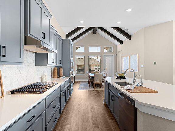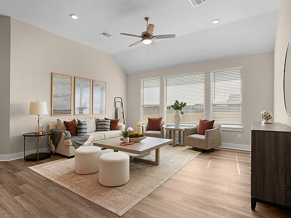 Discover the Colby - a thoughtfully designed single-story home in Highland Village, offering space, style, and flexibility. With four bedrooms, three bathrooms, and a study, this home adapts to your lifestyle. The spacious kitchen boasts an oversized center island, seamlessly flowing into the open-concept family and dining areas. A stunning vaulted ceiling extends from the dining room to the covered outdoor living space, creating an airy and inviting atmosphere. A standout feature of the Colby is the kids' den, a dedicated space connecting two secondary bedrooms with a shared full bath-perfect for play, study, or relaxation. The primary suite is a serene retreat, featuring elegant tray ceilings, an expansive ensuite bath with dual sinks, a private water closet, and an oversized walk-in closet. Designed for both functionality and comfort, the Colby is the ideal home for modern living in Highland Village! Visit our model and ask about our current buyer incentives!