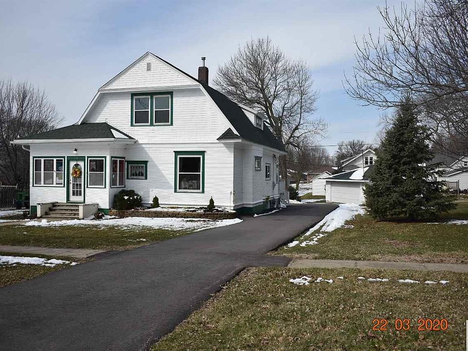 This 1 1/2 story home invites you in through a covered 3 season porch, where the front door opens into the dining room with wood floors through out, bay window and crown molding. Off of the dining room is the living room that boasts new carpeting and the same beautiful crown molding, as well as a den w/ built in bookshelves, a remodeled bathroom, and main floor laundry. There is brand new flooring through out the kitchen, a remodeled mudroom, and a 25x14 deck off the back. Upstairs you'll find 3 spacious bedrooms, as well as the homes second completely remodeled bathroom. There is a 2 car detached garage, as well as an additional 1 car detached garage w/ a work bench, and a newly paved driveway in 2019. Other amenities include new shingles, exterior paint, windows, water heater, and so much more!