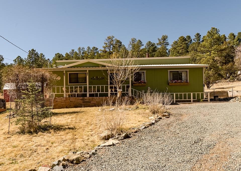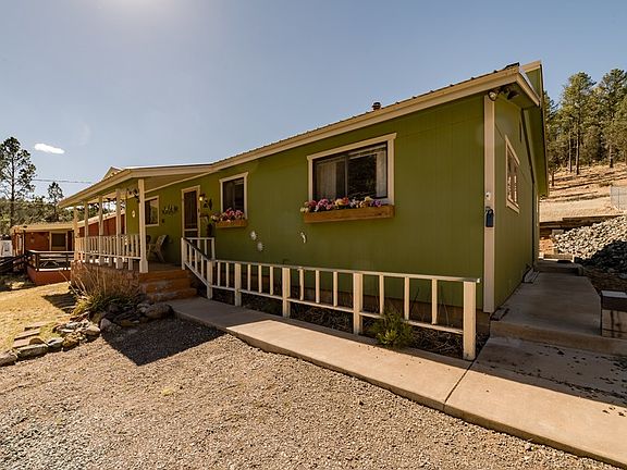 This home is a 2 bedroom 3 bath with a large sunroom added on the back with lots of natural light. Each bedroom has an on-suite bath, with the large tiled sunroom set up with sleeping arrangements and a 3/4 bath! Wood floors, rock wood burning fireplace, high ceilings, complete with the full mountain cabin feel on the inside. Dining area and breakfast bar, kitchen tiled floor with gas range. Metal roof, concrete front porch, open back yard and sold mostly furnished. Close to midtown shopping, Inn of Mountain Gods, Grindstone Lake, Race Track and more!