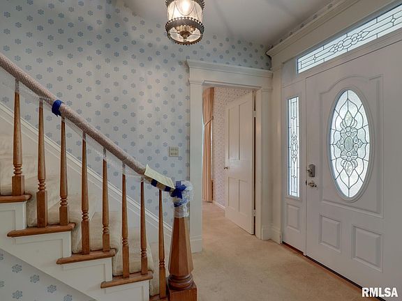 Welcome to this stunning 1852 modernized 3-story home with over 4400 sqft of living space (including the 1240 sqft in the basement), blending historic charm with modern comfort! Featuring 5 bedrooms, 2½ baths, and an updated kitchen with abundant cabinetry and a spacious walk-in pantry. The grand uninterrupted wooden banister staircase connects all three stories showcasing timeless craftsmanship and character throughout. The basement has expansive built in cabinetry and shelving. This home has a sturdy foundation with no settling! Enjoy peaceful mornings on the covered front porch with a wooden swing or relax on the upper back balcony overlooking the beautiful 2-acre lot filled with mature shade trees. A 2-car oversized attached garage with built-in cabinets and additional storage above with dropdown access adds convenience to this remarkable property—an ideal blend of history, space, and serenity!
