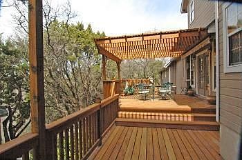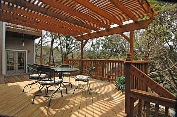 Traditional home with great curb appeal sits on a beautiful wooded bluff lot in sought after River Ridge. Wood floors, formal spaces, great family room, cased windows and crown moldings are just some of the features this home has to offer. Spacious master suite offers enough room for a sitting area and a private deck with a treetop distance view. Quick access to IH 35, major roads, hospitals and shopping