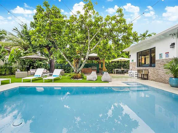 With over 1900 sq ft of interior space, this MOVE IN ready home has an open and spacious layout with 3 beds|3 baths. Wood and stone floors throughout give the home a soft and light finish. Beautiful fireplace. Kitchen has spacious pantry, stainless steel appliances & quartz counters. The outdoor living is beyond spectacular. It is immaculate. Along with the bespoke seating, heated pool (2021), turf grass surrounded by Travertine tile floors. Matured landscape & automated outdoor lightning. This home features impact windows/doors, it is not in a flood zone, automatic front gate, 3-car spaces and a security camera system. Prime location, walking distance to A+ schools, shopping, dining, parks and entertainment.