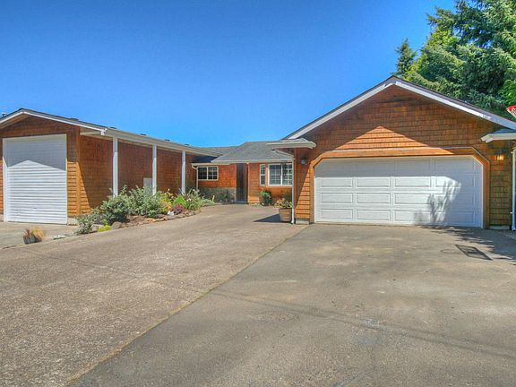 Completely updated home with panoramic views of the ocean, Alsea Bay and the Alsea Bridge. Large master suite with attached bathroom. Hickory flooring. Two large decks, one of which is glass-enclosed. Quiet entry courtyard with water feature. Two-car attached garage AND large RV garage and shop. Close to town, shopping and services, and all the local schools. Out of tsunami zone; city sewer.