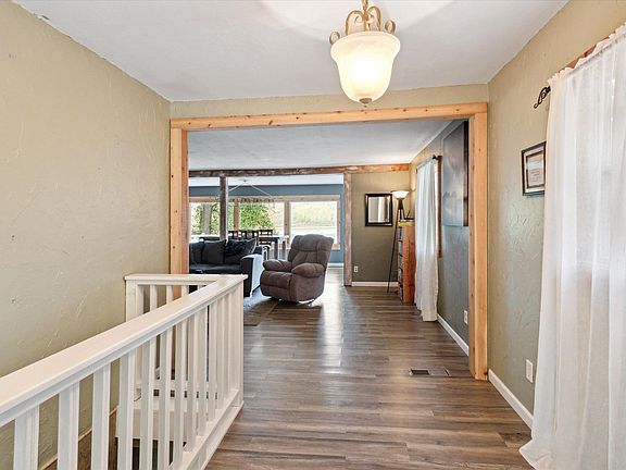 With a stunning wrap-around view of Big Fish Lake on the top and lower deck of the home, you can not go wrong. Features include an open floor concept, spacious living room connected to a well-lit dining area, roomy kitchen with breakfast island, main floor bedroom and full bath. The full finished basement includes a rec room, second bedroom, and primary ensuite with backyard access, fireplace, walk-in closet, spa tub and separate shower. The garage provides ample storage space and workshop space with updated lighting and electrical. If you enjoy the slower lake life, this is the spot for you. Located near the Buffalo farm, this home offers the tranquility of nature at its finest. Schedule your private showing today.