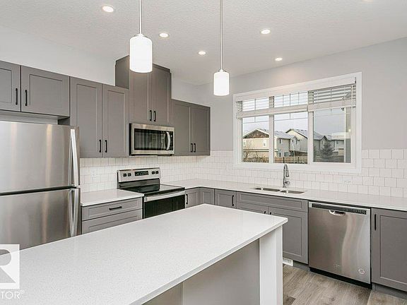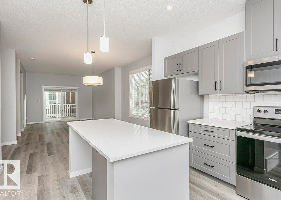 Modern Style Meets Everyday Comfort in Secord! Built in 2023, this move-in ready 3 bedroom, 2.5 bath townhouse offers over 1,765 sq ft of bright, open living space with designer finishes throughout. The stylish kitchen features quartz countertops, stainless steel appliances, walk in pantry and a spacious island that connects seamlessly to the dining area perfect for entertaining. A convenient den off the living room. Balcony with natural gas hook up for BBQ. Upstairs you’ll find three bedrooms including a primary suite with large walk in closet and ensuite. Enjoy the convenience of an attached single garage with extra driveway parking and low maintenance living. Located in a growing community close to parks, schools, amenities, Highway 16A, Anthony Henday and Costco. Experience contemporary West Edmonton living at its best!- features to outline - parking for two - secord - finished finished flex room in the basement - den on main floor and walk in pantry - end unit with tons of light