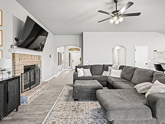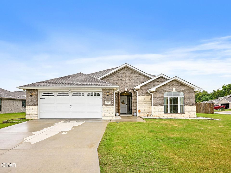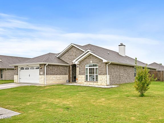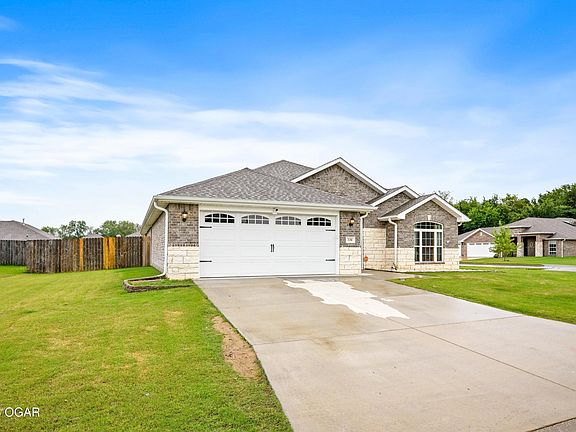 Brick and stone exterior highlight this 2,363 sq. ft. home in a desirable Webb City neighborhood. The open floor plan features a spacious living room with an all-brick fireplace and tile floors flowing into the kitchen and dining area. The kitchen offers granite countertops, custom cabinetry, recessed lighting, stainless steel appliances, and a pantry. This home includes 4 bedrooms, 3 full bathrooms, utility room, covered patio, and attached 2-car garage. Additional features include a fenced yard, water softener that can remain with the home, and a structural warranty through 2031. Located in Webb City Schools, this property combines comfort, style, and peace of mind.