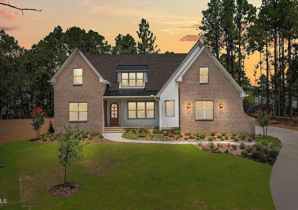 This elegantly designed custom home welcomes you with an arched front door entrance, leading into a warm and inviting foyer opening to a spacious living area. The kitchen is a cook's dream, featuring a stunning sitting island, a gas range with a pot filler and walk-in pantry. A formal dining room provides the perfect setting for gatherings, while the living room, centered around a gas fireplace, offers a cozy yet refined ambiance. The master suite is a true retreat, open with a vaulted ceiling, double glass doors that open to the rear porch, and custom walk-in closet. The serene master bathroom enhances the sense of luxury with double sinks, a walk-in shower and tub combination, and a rain head shower. A study on the first floor is conveniently located near a full bathroom, offering privacy and comfort. A separate utility room and laundry room, both with ample cabinetry, add to the home's thoughtful design. Upstairs features three additional bedrooms, two full bathrooms, and a spacious recreation room with a storage closet, providing plenty of space for all. The home is filled with intricate details, including soaring 10-foot ceilings, a beautifully crafted turned-back stairway, and tiled surrounds on all tubs. The two-car garage includes a storage closet, while a short hallway leads to an additional golf cart garage with a six-foot door and a side entrance. Outdoor living is just as impressive, with a spacious rear porch designed for relaxation. The exterior is beautifully finished with brick accents, tongue-and-groove wood ceilings on both the front and rear porches, and a roof highlighted with standing seam metal, adding a touch of architectural elegance to this remarkable home. The property is free from city taxes. The HOA offers a thoughtfully designed community with amenities such as a butterfly garden, mailbox station with parking, sidewalks, trash service, private street, lawn & common ground maintenance.