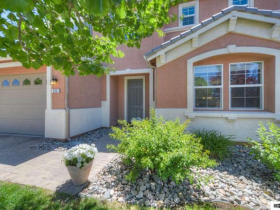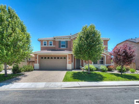 This beautiful 4 bedroom house has an open floor plan with vaulited ceilings, perfect for entertaining. Enjoy the summer nights outside on the oversized lot, with professional landscaping. Close to schools, shopping, and freeway access, and a 30 minute drive to Lake Tahoe. This home has side RV parking and trails that connect all throughout the Damonte Ranch/Curti-Caramella Ranch areas. Agents please read private remarks regarding offers.