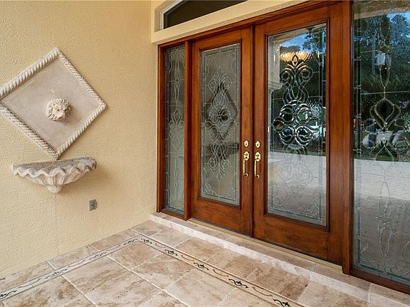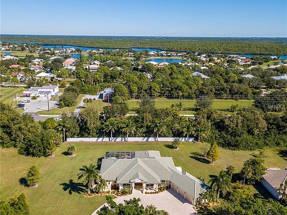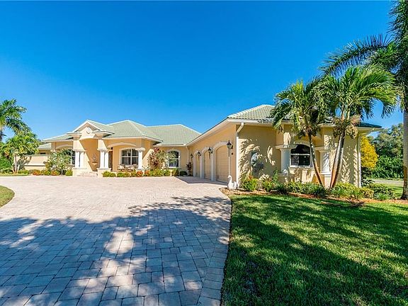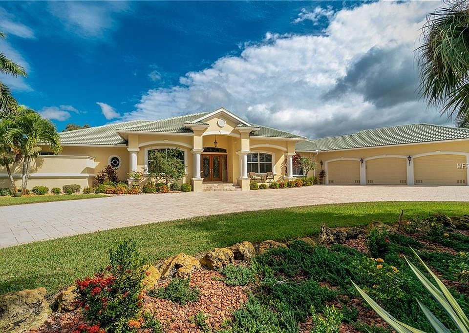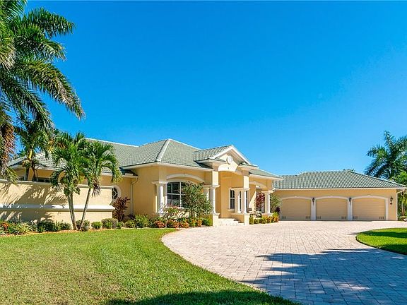 When you enter the highly desirable Cape Haze Community and turn on Spaniards Road, you leave the real world behind and find yourself in a place that you never thought existed. You feel The Old Florida Charm driving under a canopy of beautiful trees to your Magnificent Estate Home. Nestled on almost 1.5 acres, amongst prestigious waterfront properties, the quality of this home is unmistakable. The sparkling fountain, circular driveway, lush landscaping, tile roof, and three car garage are just the beginning. As you approach the grand columned entrance, the massive ornate leaded glass front doors provide a gateway to your upscale hideaway. Elegant travertine flooring guides you into the living room where an impressive double-sided gas fireplace takes center stage. The soaring coffered & tray ceilings, columns, custom crown molding and baseboards, and spectacular lighting fixtures provide the backdrop for the infinite upgrades in this home. The kitchen features granite, wood cabinets, stainless appliances, induction cooktop, convection oven, and overlooks the Family Room where zero corner sliding glass doors open to the screened lanai, sparkling pool, spa, Summer Kitchen, and private backyard. The Master Bedroom features the other side of the intricate fireplace and a sitting room. Relax by the pool and keep your floors dry using the pool bath. The newer A/C, surround sound, & tankless hot water heater are just a few more upgrades. Don't miss this opportunity that only existed in your dreams-until now.