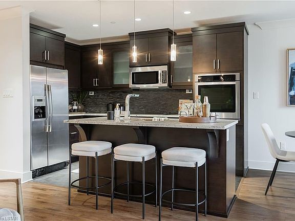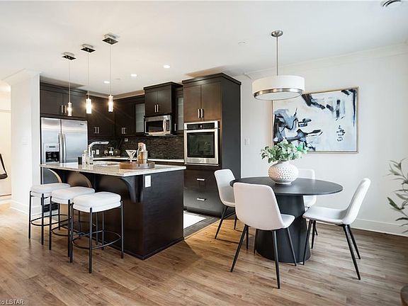 Luxury living in the heart of London, you don't want to miss an opportunity to get into this exclusive 2 bedroom 2 bathroom condo! This urban condo is located in the Nuvo Building on Sugarcreek Trail in West London. This remarkable location is convenient to downtown, hospitals, UWO, shopping, transportation, trails, parks and all the necessary amenities. It is the perfect opportunity for the first time home buyers, students, young professionals, retirees or investors alike. The modern décor highlights the space with ample natural light courtesy of the large windows showcasing the open concept living space ideal for entertaining guests. It also captures an abundance of must-haves such as stainless steel built in appliances, granite countertops, island breakfast bar, beautiful wooden beam ceiling feature, crown moulding, electric fireplace with modern tile surround, plus the convenience of in-suite laundry, one assigned oversized underground parking spot plus ample above ground parking spots, a storage locker conveniently located on the same level, secure entrance and bicycle storage room makes this property tick all the boxes. This property also includes a Guest suite available to book for your guests at a nominal fee. Book your viewing today, this one won't last long!