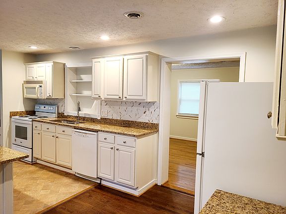 Three bedroom rancher with one and a half bath recently updated for new tenants. Kitchen has granite counter tops with electric appliances, home also has central heat and air along with a washer and dryer. A fenced in back yard with a deck makes outdoor activities convenient and extra storage as there is a shed in the back. This house is located one block from Seven Pines Elementary and has community pool next door.