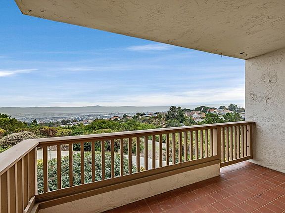 Picturesque views from the living room, dining room and each bedroom. The bright, sunlit living room offers views of the bay and the morning sunrise. You can wake up to this view from both bedrooms. This end unit has 2 bedroom 2 bath and is one of the larger square foot units. No more going to the laundromat, in unit washer and dryer comes with the unit. With new paint the unit sparkles. A private deck off the dining room has a view of the bay. You can enjoy a morning cup of coffee while watching the sunrise. A quiet walk thru the pathways and gardens can be a relaxing way to start or end the day. HOA covers cable TV, hot water, garbage and pool and yard maintenance. Easy access to 280,101,BART, Millbrae Schools, Peninsula Hospital, and Lunardi's.