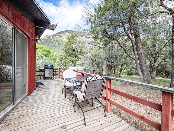 The spacious kitchen, featuring a breakfast bar, invites gatherings and nostalgic family meals. Earthy tones dominate the decor, infusing the cabin with a cozy ambiance. Step out onto the wrap-around deck that embraces the natural surroundings and offers stunning views of the forested area and the nearby East Verde River.he cabin seamlessly integrates modern amenities with a classic 70s cabin aesthetic, providing a perfect backdrop for activities like hiking, fishing, and tubing. With two good-sized bedrooms adorned with sliding doors leading to the deck, plus a storage shed to hold recreational gear, this cabin is both functional and stylish. Experience a serene retreat where the warmth of the past and the allure of nature come together, creating an ideal escape in Beaver Valley Estates.