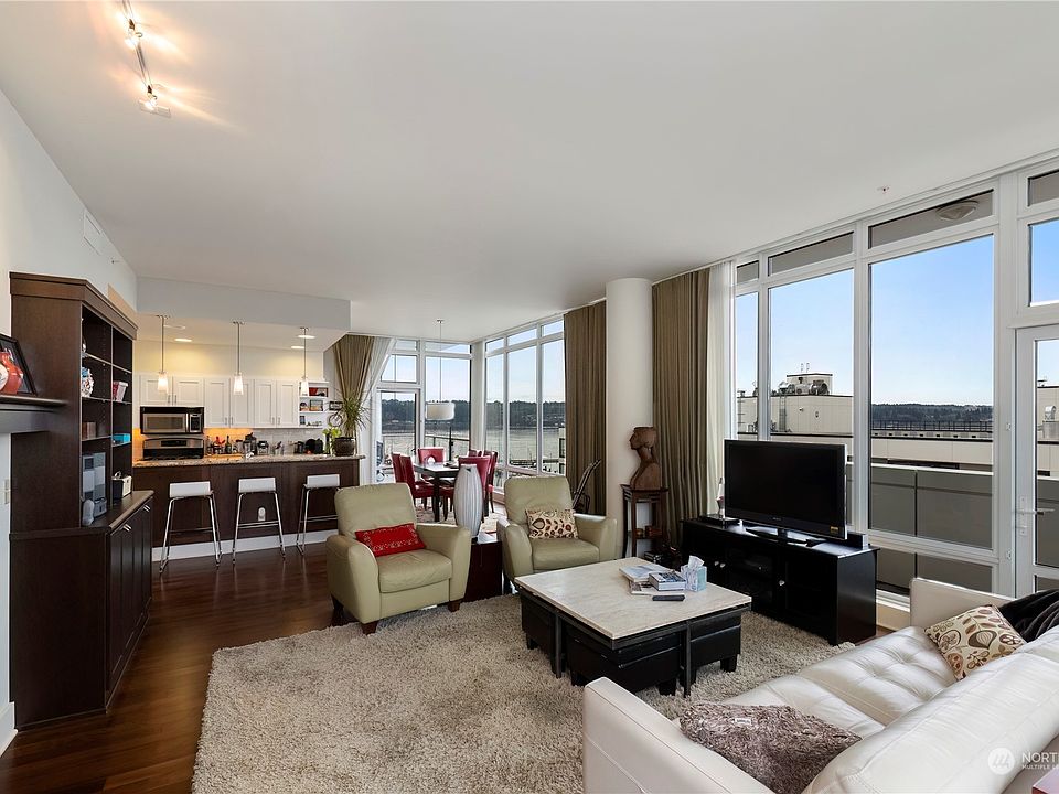 Gas fireplaceOlympic mountainsFloor-to-ceiling windowsCity lightsWalk-in closetHigh-end finishesStainless steel appliances