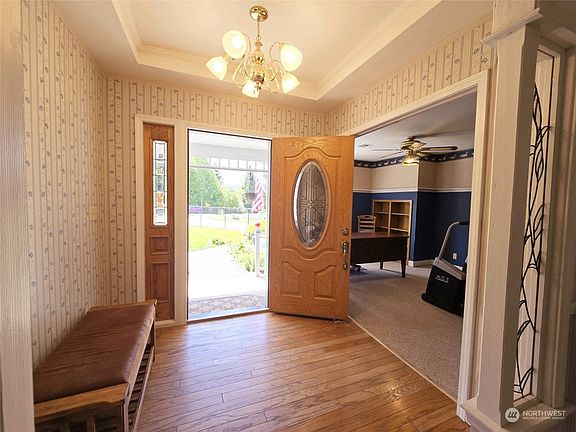 Single Story, 1926 square ft on a 1.04 manicured lot. 3 car attached garage & 2 car detached garage w/220. Covered front porch w/fully fenced yard & sprinkler system. Drive through gates to access detached garage & workshop. 3 bedroom + Office/Bonus room with closet. Jetted tub & separate vanities in primary bath. Updated kitchen w/granite counters & breakfast bar. Dining Room, Pantry, Retractable awning over deck-BBQ, washer & dryer included. Huge Great Room. Park-like grounds in a wonderful neighborhood; very convenient location near town.