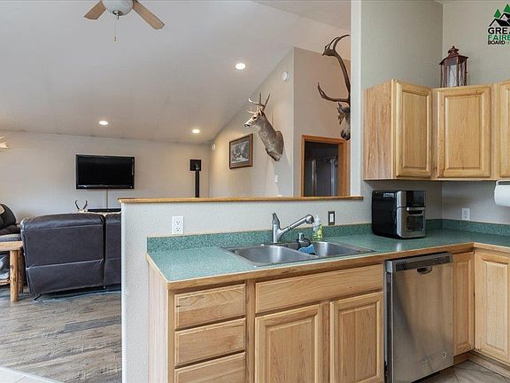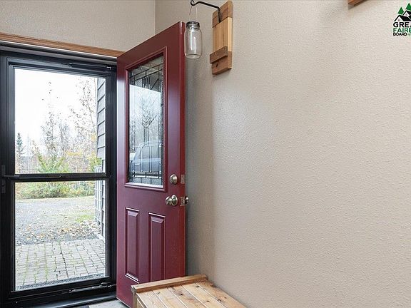Enjoy the best of both worlds with this beautifully updated 4 bed, 3 bath home on a private 1-acre wooded lot—just 8 minutes from town. With nearly 2,400 sq ft of living space, this energy-efficient home features double wall construction, triple-pane windows, HRV system, heated floors, and a 5 Star+ energy rating. The main level includes large south-facing windows, new flooring in common areas, and a cozy pellet stove. The remodeled primary suite boasts a walk-in shower and large walk-in closet. A second living area downstairs stays naturally cool in the summer, while the updated kitchen is ideal for a family of 4–5. Enjoy the new wraparound Trex decking, fresh interior paint, and oversized 2-car garage with independent doors. Moose and even lynx occasionally pass through the yard, and the Northern Lights are often visible thanks to low light pollution. A true retreat with modern comforts—don't miss this one-of-a-kind property.