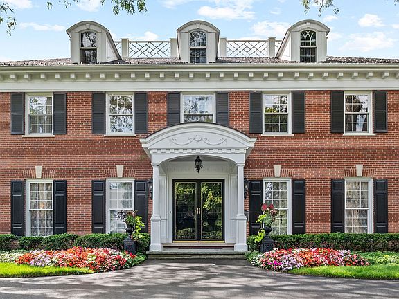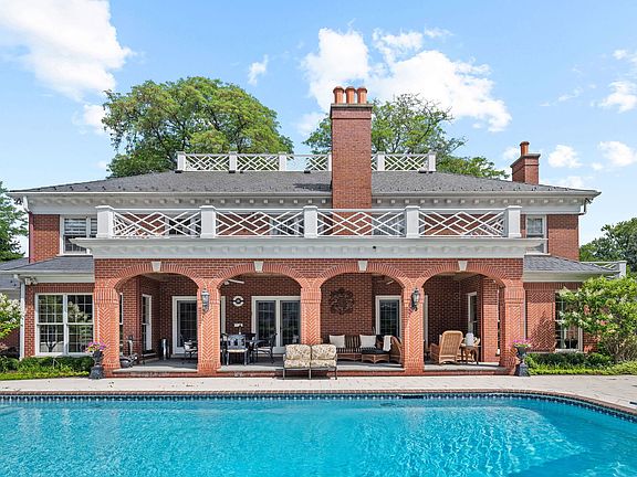Perfectly nestled on one of Winnetka's finest enclaves, this stately 6-bedroom, 5.2-bath Georgian estate offers a rare fusion of architectural elegance, exceptional craftsmanship, and resort-style amenities. Set on nearly an acre of meticulously manicured grounds, the estate is introduced by a sweeping circular drive that highlights the home's classic brick facade, brand-new DaVinci slate roof, columned portico, and timeless symmetry. Together, these elements create a striking first impression and set the stage for interiors that exude sophistication at every turn. Step inside the grand "bookmatched" marble-floored foyer, where a dramatic staircase sets a refined tone for the home. To one side, the formal living room offers an inviting gathering space anchored by a marble fireplace, while the formal dining room is perfectly scaled for both intimate dinners and large-scale entertaining. A massive, richly paneled home office with dramatic coffered ceilings offers an impressive and inspiring workspace. At the heart of the home, the gourmet kitchen boasts professional-grade appliances, an oversized island, full wall of pantry storage, and a sunlit breakfast area all overlooking the magnificent pool and grounds. A butler's pantry ideally placed between the kitchen and dining room provides effortless entertaining. Just beyond, the kitchen opens to a cozy family room with a fireplace and wet bar, while French doors lead to an expansive covered terrace framed by graceful curved archways and cooled by ceiling fans. This spectacular outdoor living space features a brand-new outdoor kitchen fully equipped for grilling and al fresco dining, leading to the sparkling pool, surrounding patio and yard, creating a seamless setting for summer entertaining and secluded relaxation. A convenient first-floor laundry/mud room right off the 3-car heated garage with epoxy flooring and 2 powder rooms adds everyday ease. Upstairs, the elegantly appointed primary suite offers dual walk-in closets, a dedicated vanity area, and a spa-inspired bath with separate vanities and radiant heated floors. Four well-proportioned additional bedrooms, each with generous closets and either en-suite or adjoining baths, provide comfortable accommodations for family and guests. This level is further enhanced by expansive linen closets, abundant storage, and a dedicated luggage room. The impeccably finished lower-level rivals any private club, featuring a state-of-the-art home theatre, richly paneled billiards and game room, fully outfitted bar, expansive fitness studio, wine cellar, guest suite, and a dedicated woodshop for refined hobbyists or craftsmen. Located in one of Winnetka's most prestigious locations and served by its award-winning schools, this remarkable estate perfectly balances classic sophistication with modern luxury. Combining architectural pedigree, unparalleled amenities, and impeccably landscaped grounds, this is a home to be cherished for generations. Furniture available for sale.