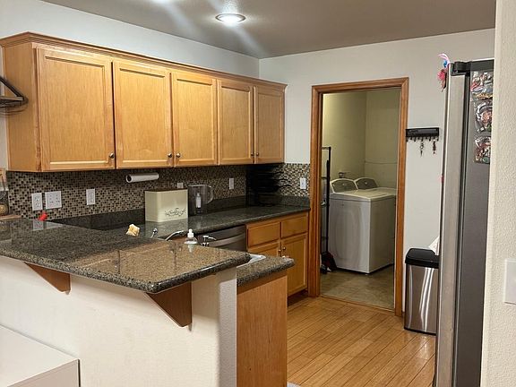 This beautifully furnished 3-bedroom plus office home offers an impressive blend of style, comfort, and convenienceperfect for professionals, families, or anyone in need of a temporary stay. The open-concept great room seamlessly connects the living, kitchen, and dining areas, featuring a modern kitchen with stainless steel appliances and bamboo flooring. The luxurious master bath has been remodeled to include a freestanding tub, frameless glass shower, and elegant tile work. The home also includes a fully fenced, low-maintenance backyard, with a play park and sports court just down the street. The dedicated office is equipped with a desk and dual monitors, making it ideal for remote work. Sleeping arrangements include a king bed in the primary bedroom, a queen in the second, and a full in the third.