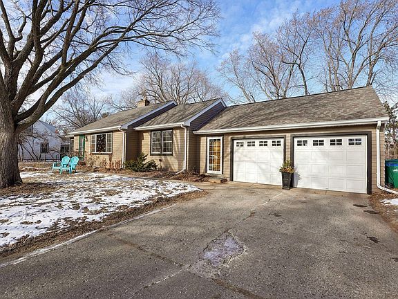 Highlights of the home include a new roof, James Hardie siding, refinished oak floors, refreshed eat-in kitchen, living room with southern exposure and fireplace, three-season porch overlooking the lake, northwoods/lodge-style family room with fireplace in lower level, four large storage areas, and two-car attached garage.