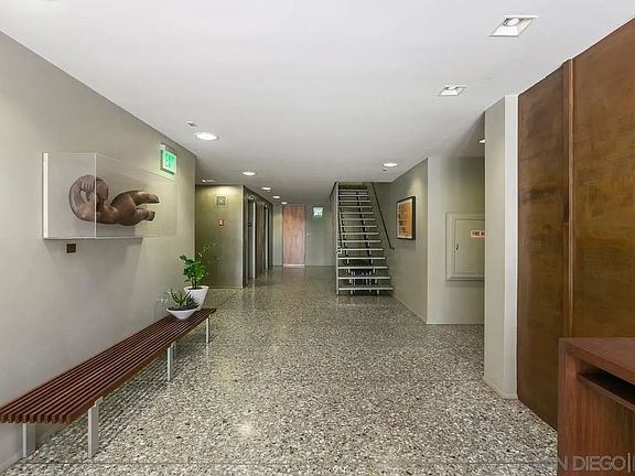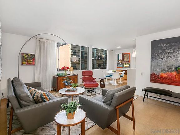 Welcome home to this rarely available condo in Banker's Hill that perfectly marries the charm of mid-century modern design with contemporary upgrades, all conveniently located near cultural attractions, restaurants and all that Balboa Park has to offer. This iconic building offers tremendous tax benefits under the Mills Act. When the Solomon Building was first opened in 1959, it was deemed "San Diego's Most Distinguished Place to Live". This condo offers not just a home but a lifestyle. When you step inside, you'll find a seamless blend of sleek lines that define mid-century modern aesthetics. The south-facing windows fill the home with natural light all day. 2019 kitchen updating by Pirch includes refinished cabinets, quartz counter tops, Miele induction cooktop, Miele convection oven, Miele dishwasher, and Fisher & Paykal refrigerator, creating a great workspace for any chef. This home features two ensuite bedrooms, designed to be tranquil retreats. Both bathrooms feature Toto NeoRest Washlet toilets, large sinks, HansGrohe faucets, new cabinets in front bathroom. SEE SUPPLEMENT