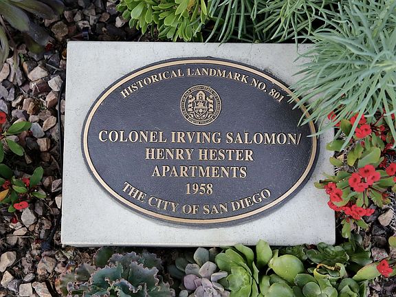 Rarely available 3rd floor unit in historically designated Salomon Building located across from Balboa Park. Designed by Henry Hester, this building is one of San Diego’s finest examples of mid-century modern architecture. Plentiful windows and south-facing orientation allow for abundant natural light. Kitchen features stainless steel appliances. Coveted location enjoys close proximity to museums, restaurants, Old Globe Theatre and more. Mills Act status affords owner significantly reduced property taxes (appx. $2,800/yr).