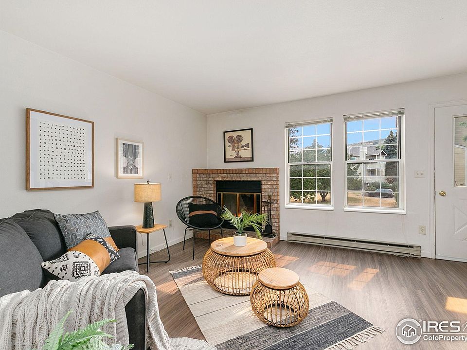 Incredible Townhome in prime West Fort Collins location! Easy access to trails, natural areas, Horsetooth Reservoir, disc golf, and more. This updated townhome features luxury vinyl plank flooring, natural wood highlights, LED lighting, and a cozy wood-burning fireplace. The bright kitchen offers low-maintenance laminate counters and updated cabinets. Upstairs you'll find two spacious bedrooms with mirrored closet doors and in-window A/C units. Laundry room includes built-in storage, folding table, and washer/dryer. The oversized one-car garage comes with shelving, pegboard, a workbench, and in-floor sewer clean-out. New water heater (2022). HOA includes an outdoor pool, trash, water/sewer, exterior maintenance, and hazard insurance. Great location, perfect for outdoor enthusiasts or investors! Sellers are open to discussing Seller Financing with the right offer.