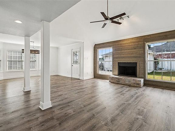 The open-concept living area features large windows that flood the space with natural light, highlighting the wood-burning fireplace — the perfect spot to gather with family and friends. The spacious kitchen is a chef’s dream, boasting abundant cabinetry, granite countertops, and a kitchen island, and plenty of room for meal prep and entertaining. The primary suite offers a peaceful retreat with a tray ceiling and a luxurious primary bathroom complete with dual sinks, a jetted soaking tub, and a separate walk-in shower. With three full bathrooms, this home ensures comfort and convenience for family and guests alike. The corner lot provides extra privacy and curb appeal, making this home truly stand out. Located in a desirable neighborhood, this property offers the perfect blend of style, space, and functionality. Don’t miss your opportunity to make this dream home yours!