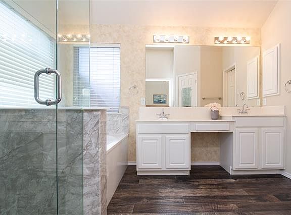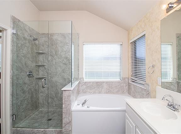 Nestled in the desirable Meadow Oaks neighborhood, this well-maintained home features a clever open layout, soaring ceilings, and opulent archways. This exceptional suburban cottage features gleaming laminate floors, a large kitchen with island open to the breakfast and living rooms, and a spacious open patio. The enormous master bedroom features a sit-in window, and leads to an opulently updated master ensuite with frameless shower, separate garden tub, and dual sinks. Also featuring a split-bedroom floor plan, this home includes a wood burning fireplace, alcoves, recessed lighting, and more! Don't miss the spacious front dining area that could be used as a study! This Corinthian cottage is sure to impress!